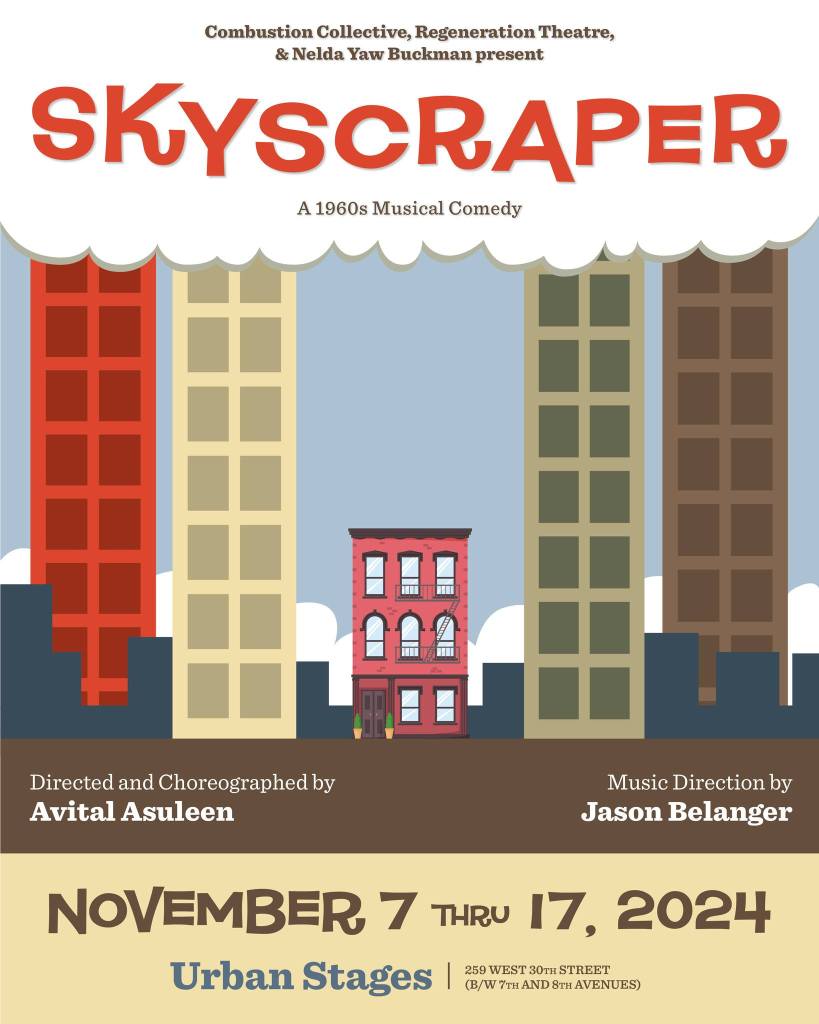 BE: I have always had a soft spot for Skyscraper. I started talking to Avital, our director/choreographer on the show, in Jan 2020 about it being our fall show, after discovering she too had a fondness for the show. I think it’s a bit of a neglected gem. It’s funny and the songs are great. The cast album does it an injustice, since the great Julie Harris was no singer, and the sound is not the greatest. We have done our research and put back in 2 songs that were cut in Detroit. This show was actually a text book example of out of town trouble. It played 6 weeks in Detroit with a storyline that was a lot more like Dream Girl and with a different lead actor (Victor Spinetti). By the time it reached Broadway, Spinetti had been replaced by Charles Nelson Reilly, the book is almost unrecognizable, and 75% of the score was new. One of the songs on the cast album was not even present opening night, but added 4-6 weeks later. We have added back in a couple of the Detroit songs, one of which has never been recorded to my knowledge, and slotted them seamlessly into Peter Stone’s book with no added dialog.